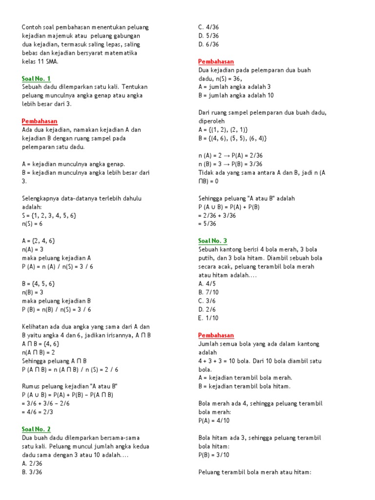 2 Contoh Soal Kombinasi. Dalam pengambilan bola, urutan tidak. Di bawah ini sudah kami kumpulkan beberapa contoh soal kombinasi yang sudah dilengkapi dengan jawaban dan pembahasannya.