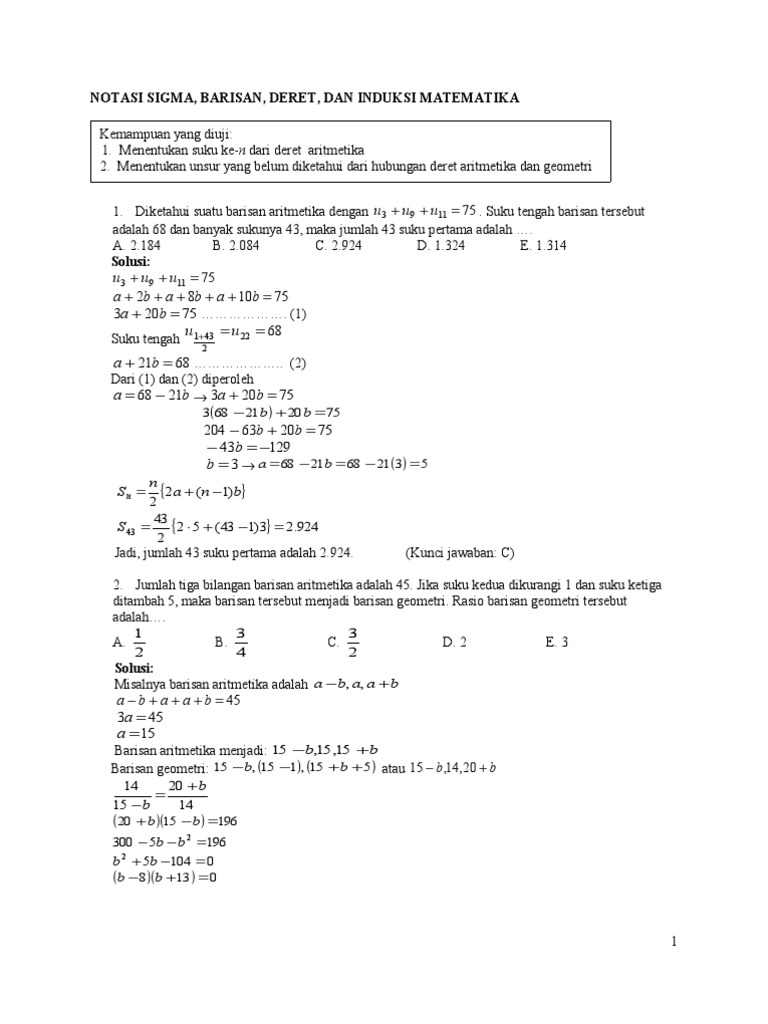 30++ Contoh Soal Barisan Dan Deret Aritmatika Dalam ... from static.fdokumen.com Semoga artikel ini bermanfaat dan menambah wawasan kamu. Diketahui suatu barisan aritmatika dengan u4 = 10 dan u9 = 25. Seorang ibu mempunyai 5 orang anak yang usianya membentuk suatu barisan aritmatika.