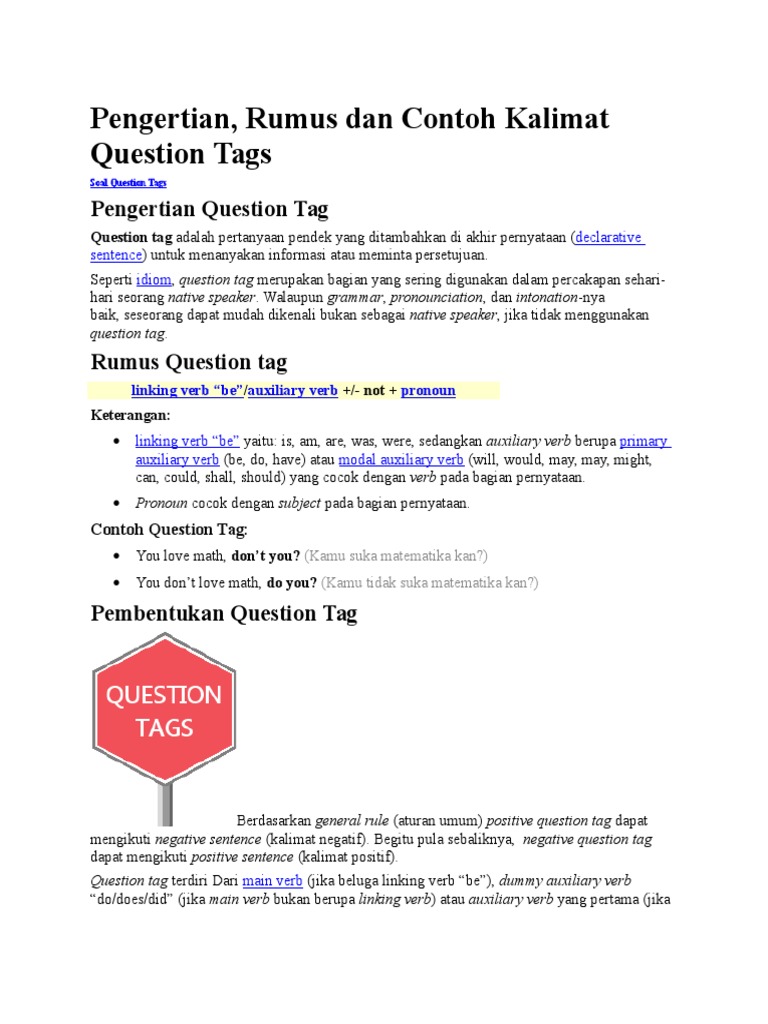 Contoh Soal Question Tag. Ali must stay, mustn't he ? Isnt that isnt it 2.