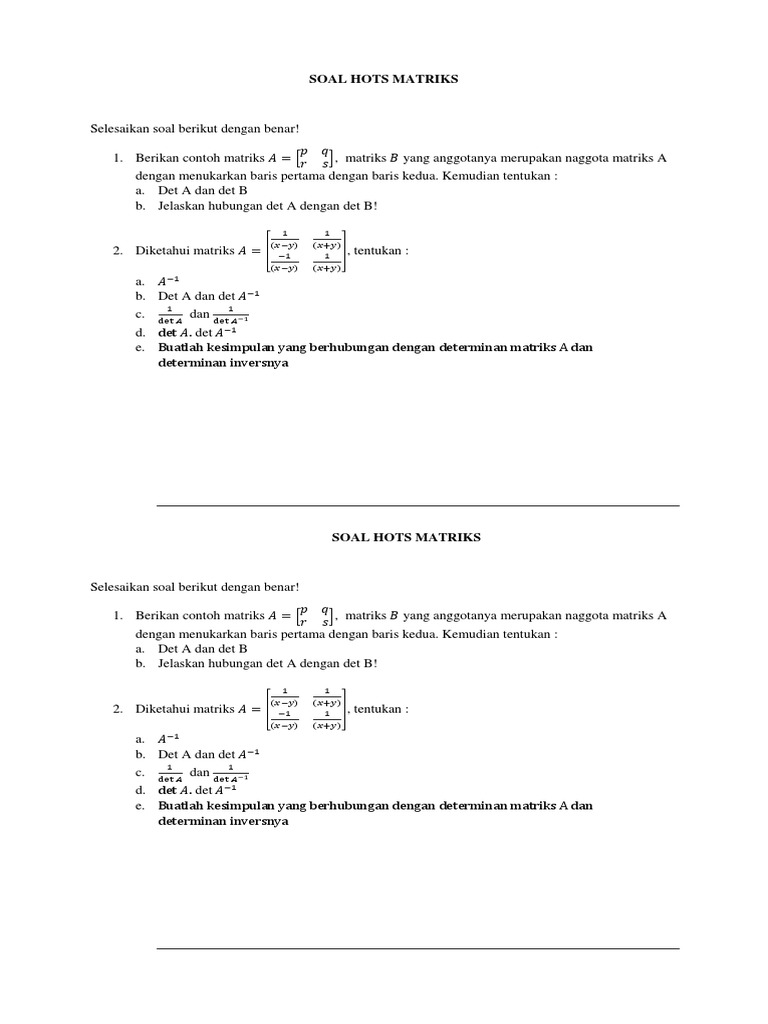Contoh Soal Matriks. Tingkat soal menguji kemampuan peserta untuk menyelesaikan soal dengan materi. Persamaan linier dengan 3 perubah.
