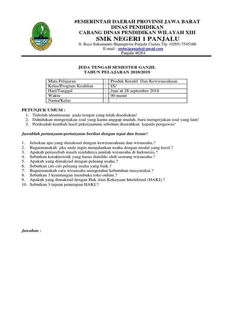 Soal Prakarya Dan Kewirausahaan Kelas 10 - Guru Paud from imgv2-1-f.scribdassets.com Seseorang mengamati sebuah benda dengan menggunakan lup berkekuatan 10 dioptri. Perusahaan menyerahkan cara untuk menarik para konsumen agar mau melakukan pembelian terhadap siswa mampu memberi contoh yang termasuk advertensi cetak. Soal dan jawaban peluang usaha produk barang/jasa.